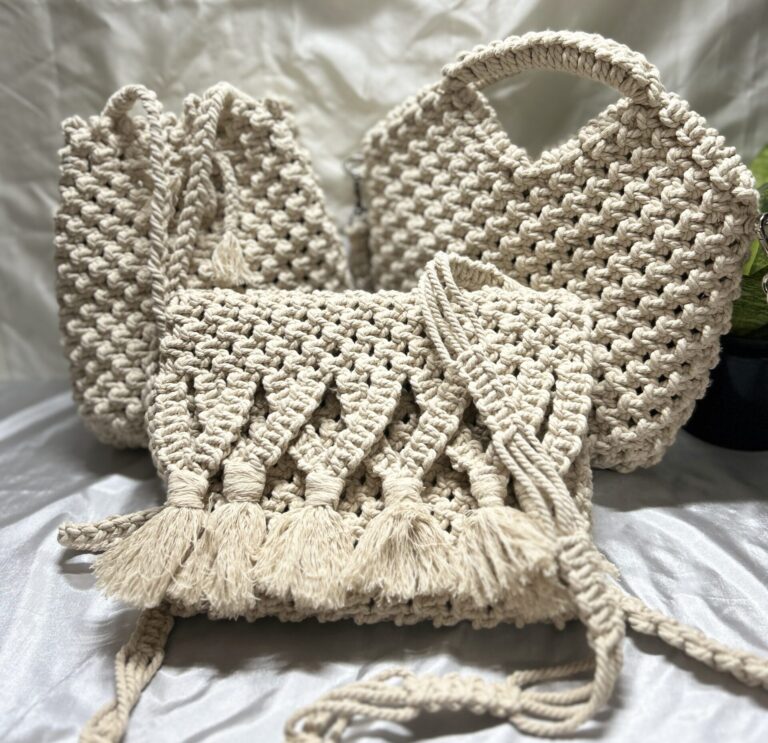 Our macrame bags are the perfect blend of fashion and function. Available in various styles, including tote bags, crossbody bags, and clutches, these handcrafted accessories are ideal for any occasion, offering a unique, artisanal touch to your wardrobe.